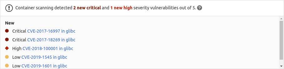 Your application's Docker image may itself be based on Docker images that contain known vulnerabilities. By including an extra Container Scanning job in your pipeline that scans for those vulnerabilities and displays them in a merge request, you can use GitLab to audit your Docker-based apps.