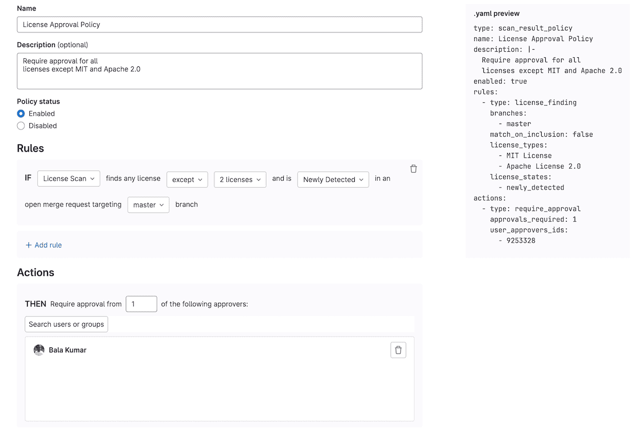 Use license approval policies to specify criteria that determines when approval is required before a merge request can be merged.
